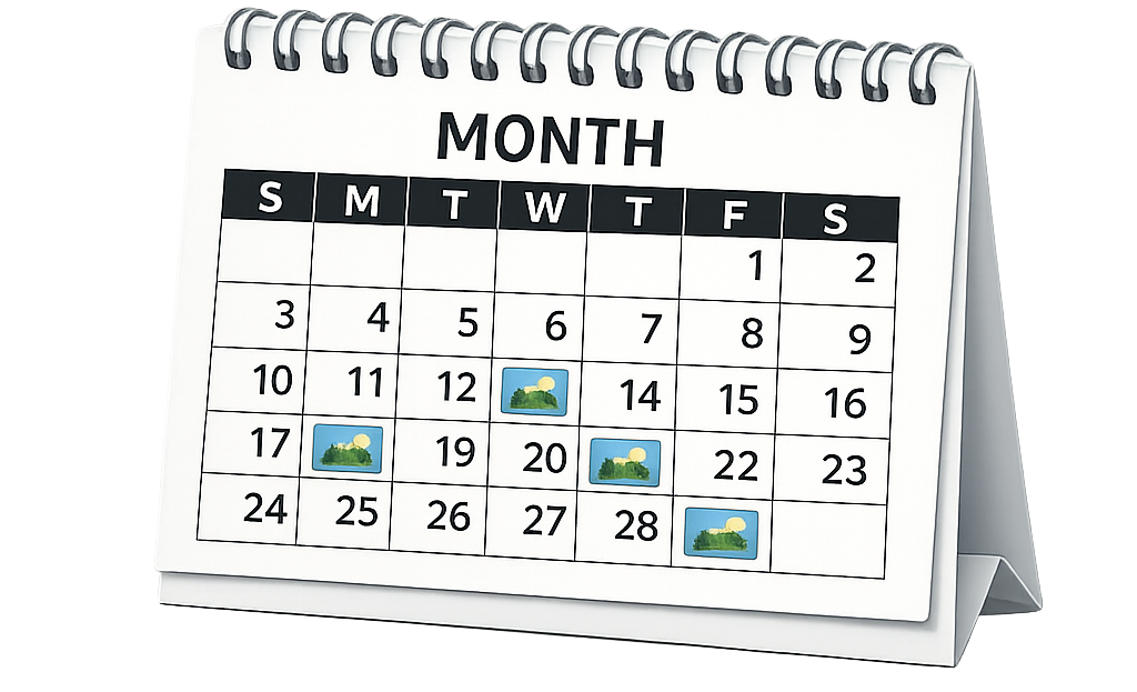 The calendar page offers a clear and intuitive way to explore your photo library by date. Built on a responsive, localized calendar view, it highlights days with available photos and displays subtle visual indicators that show how many items were captured on each date.